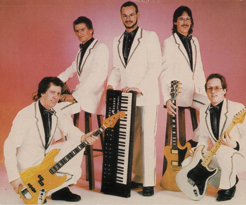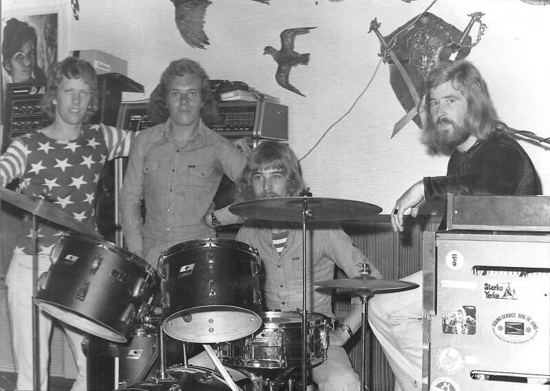 Albert drum, Jos Koopman bas, Rudy Bonnema gitarist, Joop Kievit toetsen, Robert Schnater gitarist
